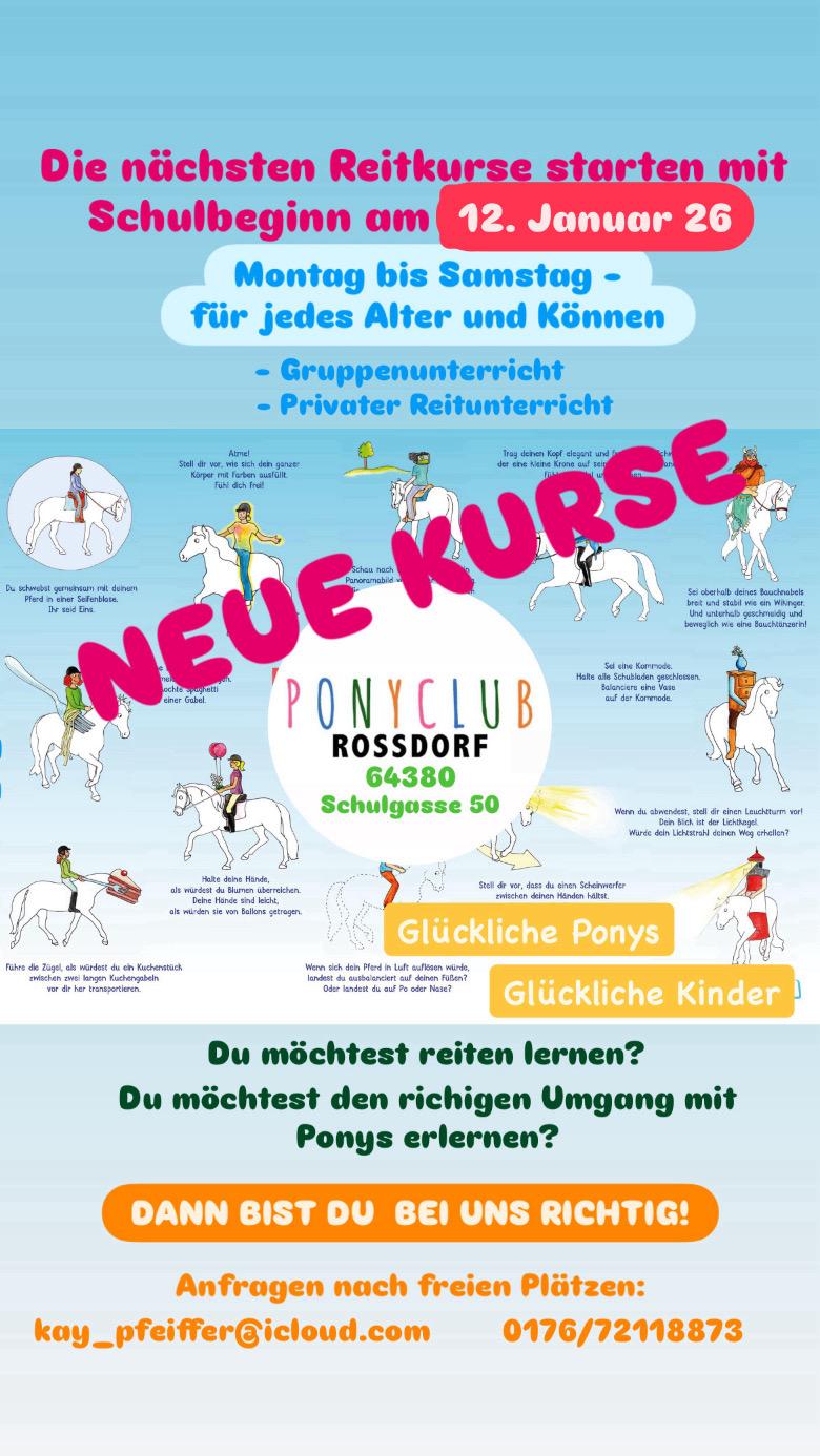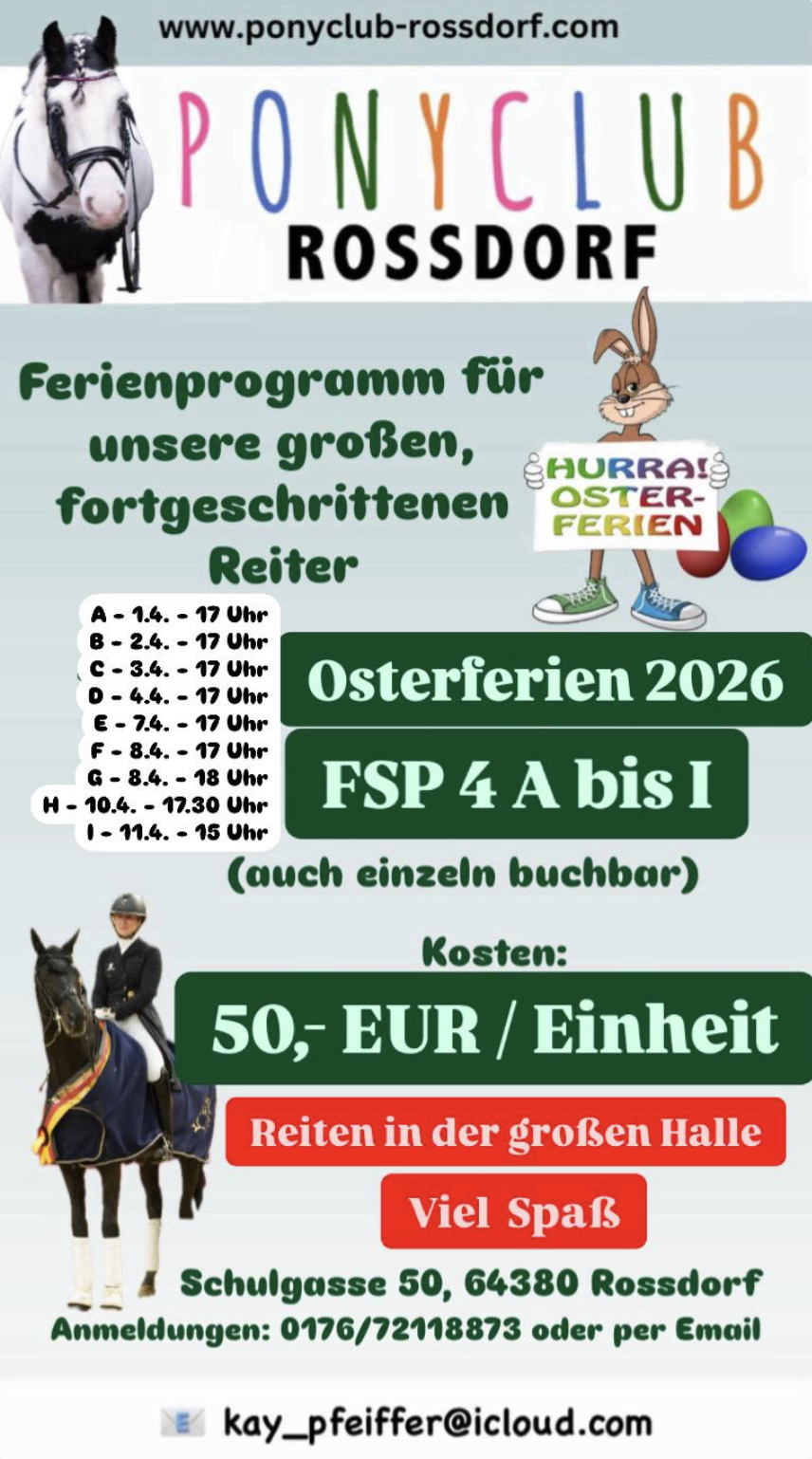 Wohl aber kann natürlich der Reitschüler in jeder Hinsicht von unserer vielschichtigen Erfahrung profitieren. Von den ersten liebevollen Kontakten zum Partner Pony, über die ersten Schritte auf dem Rücken der Shettys und anschließend aufbauend auf den größeren Ponys, bis hin zum Reitunterricht auf unseren lieben Großpferden, sowohl in der Dressur, als auch im Springen über die ersten Hindernisse, wird hier alles geboten. In kleinen Gruppen, mit geschultem Reitlehrern, professionellen Bereitern und Reit-Pädagogen, die vor allem für die Kleinsten der Kleinen zuständig sind, ist der Reiternachwuchs hier bestens aufgehoben (hier erfolgt die Einteilung durch unsere erfahrenen Trainer, je nach Leistungsstand). Wir bieten Ausbildung in der Dressur und im Springen bis in die Höchste Klasse und das mit viel Spass an unserem wundervollen Sport.